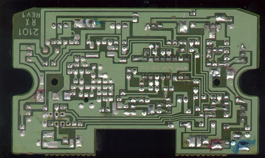 A photo of the parts side, with the control sections outlined. |